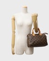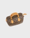 | 外装 | Aランク:レザー部分にスレやシワ、ハンドル部分に黒ずみやスレ、金具部分に黒ずみや青錆、全体に経年による風合いはございますが、コンディションは良好です。※ファスナーの革部分は作りが非常にデリケートなため、強く引っ張ると破損の恐れがあります。開閉の際はファスナーの根本を持ち、優しくお取り扱いください。 |