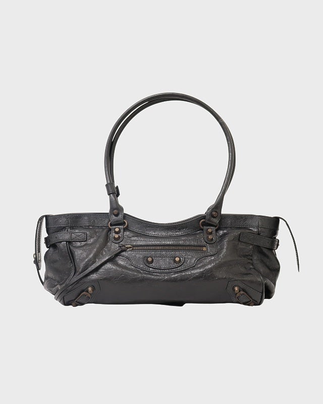 ロゴ刻印ハンドバッグ