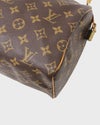 | 外装 | Aランク:レザー部分にシワ、パイピング部分に若干のスレ、ハンドル部分にスレやキズ、若干の黒ずみ、ファスナープル部分に毛羽立ち、金具部分にくすみや小キズ、僅かなメッキ剥がれや青錆がございます。※ファスナーの革部分は作りが非常にデリケートなため、強く引っ張ると破損の恐れがあります。