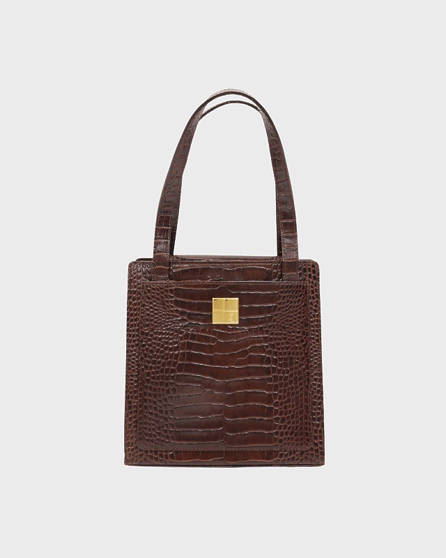 ロゴ金具レザーハンドバッグ