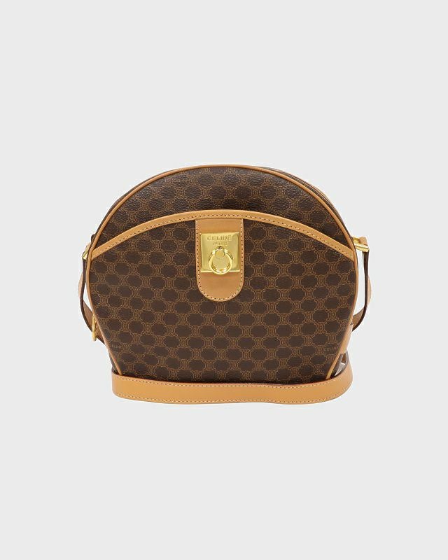 CELINE マカダム柄ロゴ金具レザーショルダーバッグ
