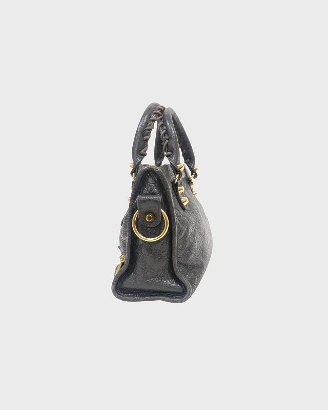 ターンロックステッチレザーハンドバッグ