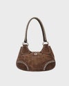 三角ロゴ金具スエードハンドバッグ