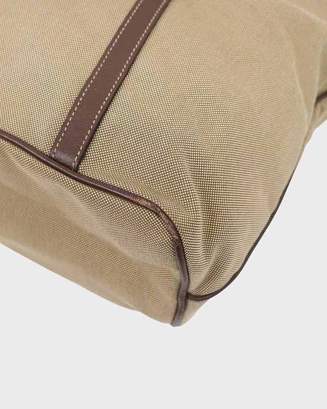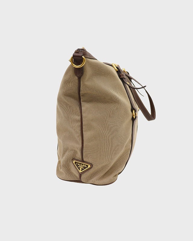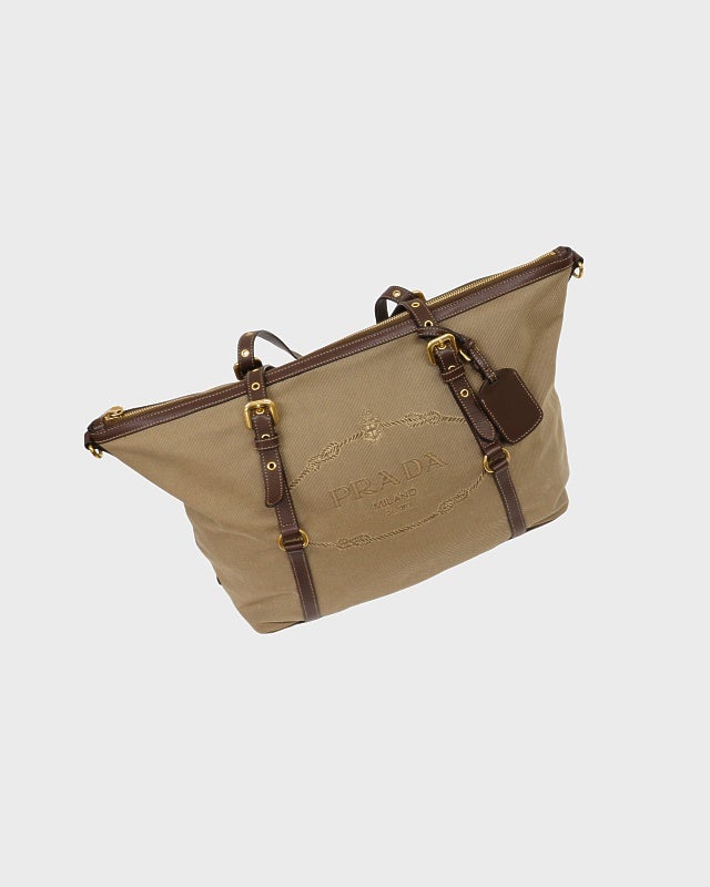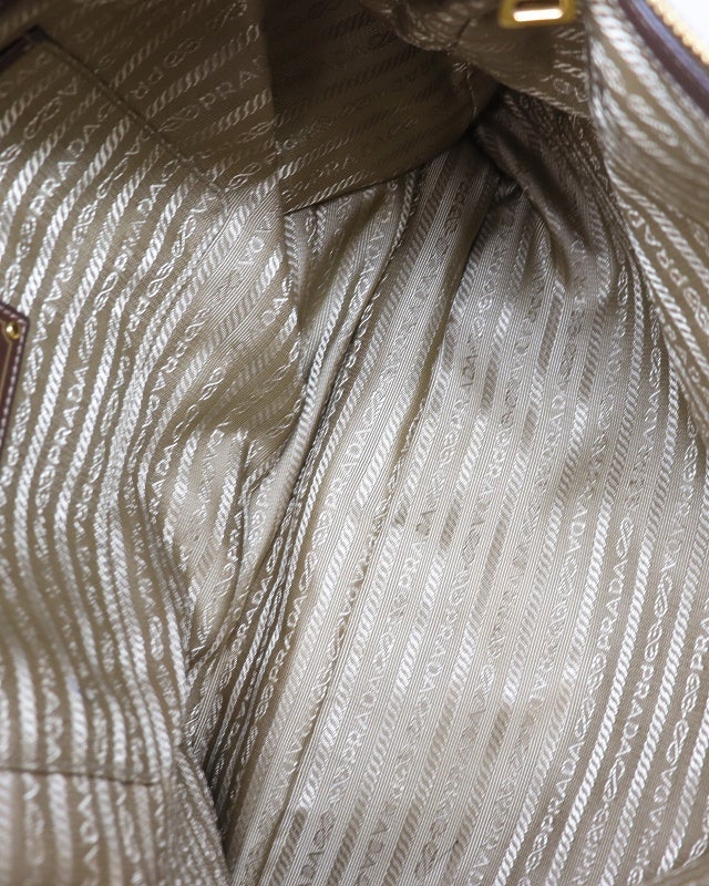 三角ロゴ金具ナイロンレザートートバッグ