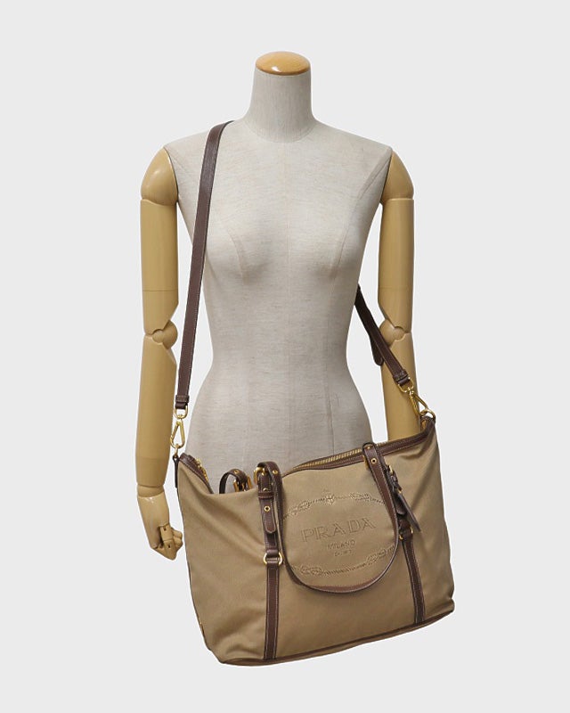 三角ロゴ金具ナイロントートバッグ