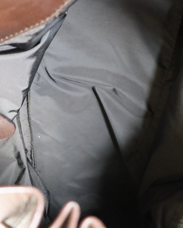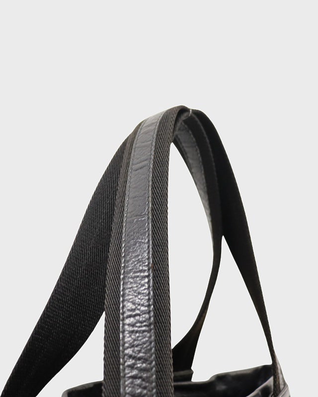三角ロゴナイロンレザーハンドバッグ