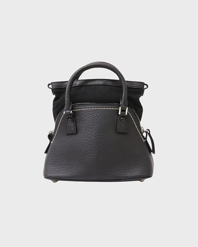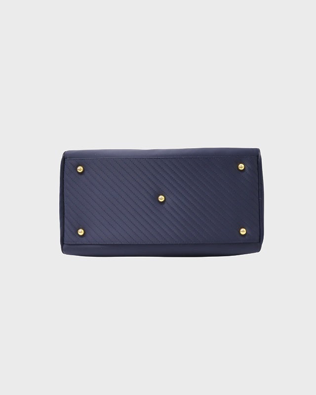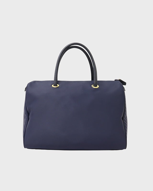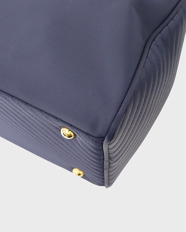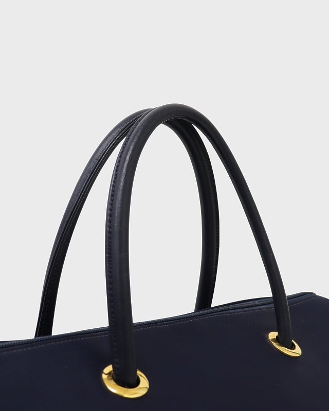 三角ロゴ金具ナイロンレザーハンドバッグ