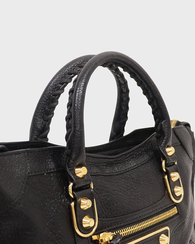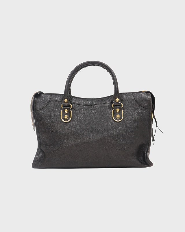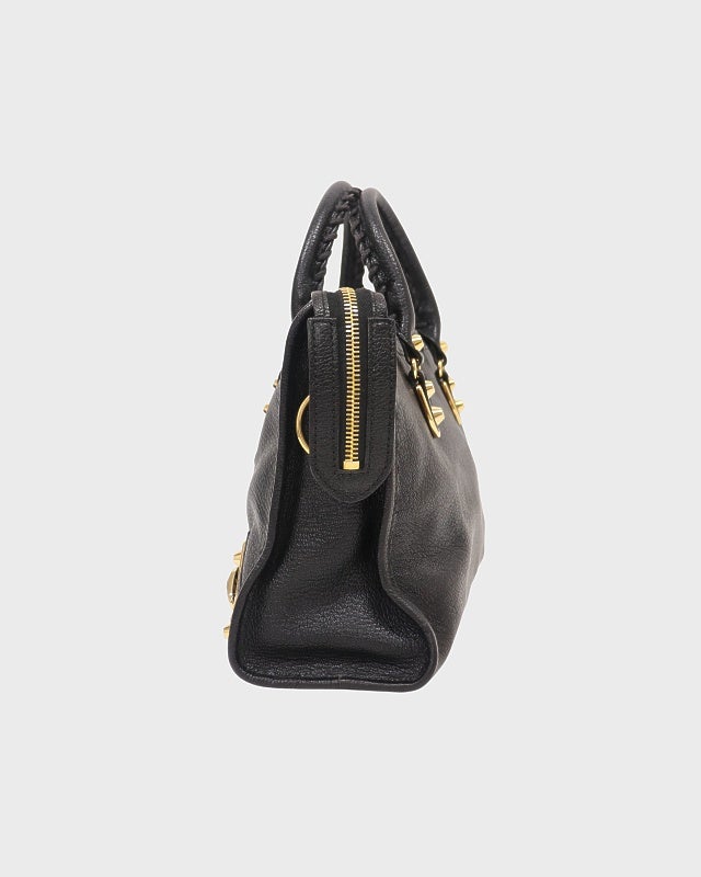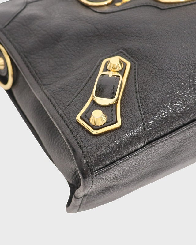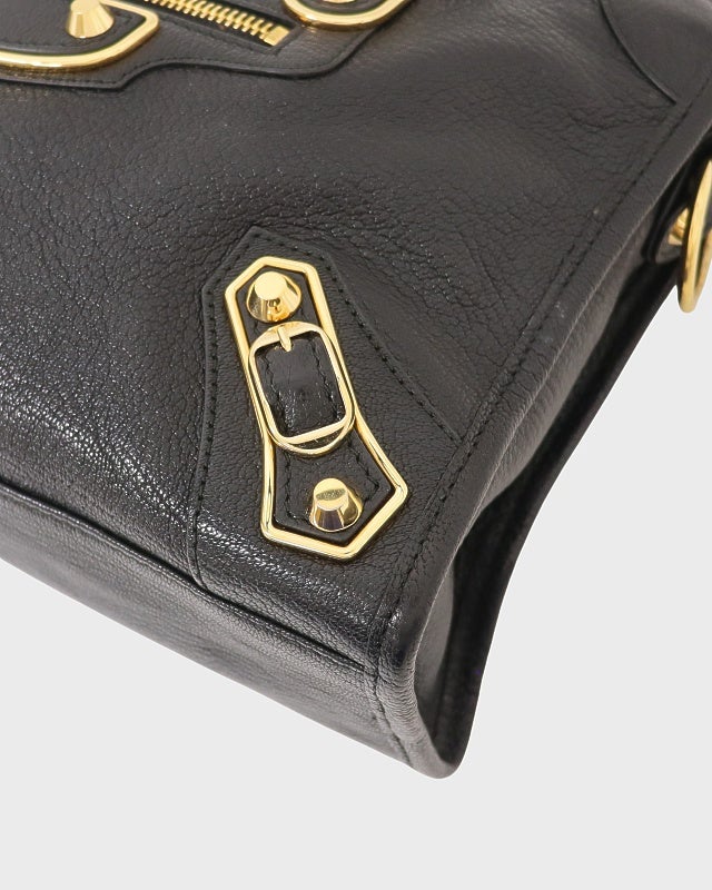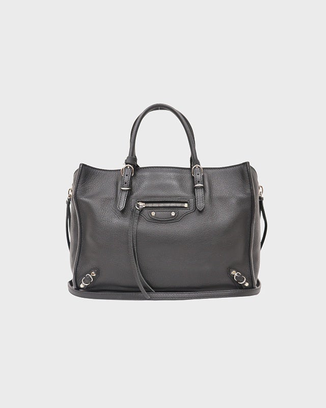 ロゴ金具レザーハンドバッグ