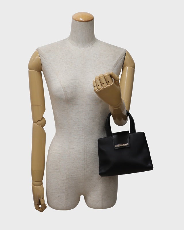 三角ロゴ金具ナイロンハンドバッグ