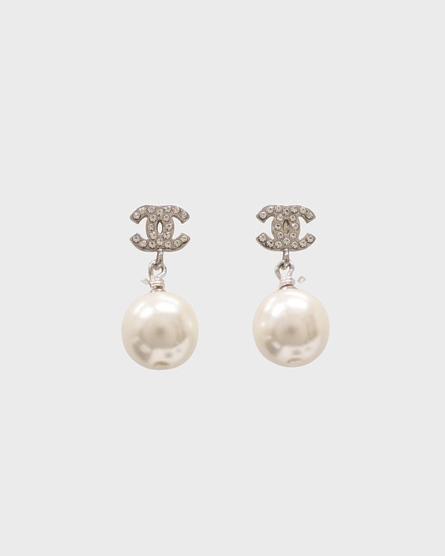 CHANEL COCOラインストーンパールピアス
