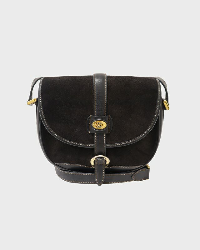 ロゴ金具スエードショルダーバッグ