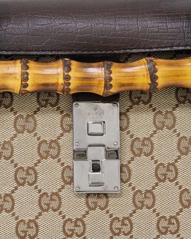 GGキャンバスバンブーレザーハンドバッグ
