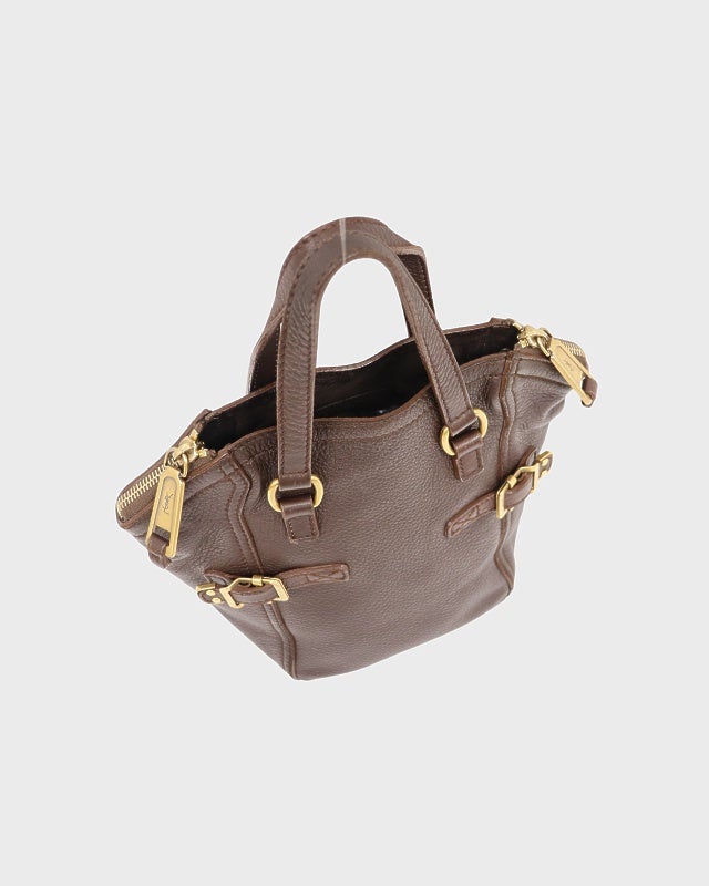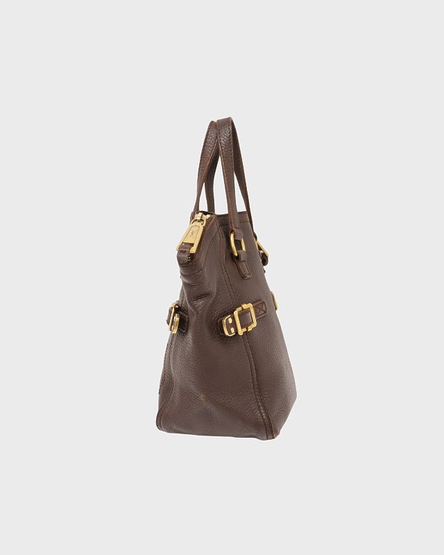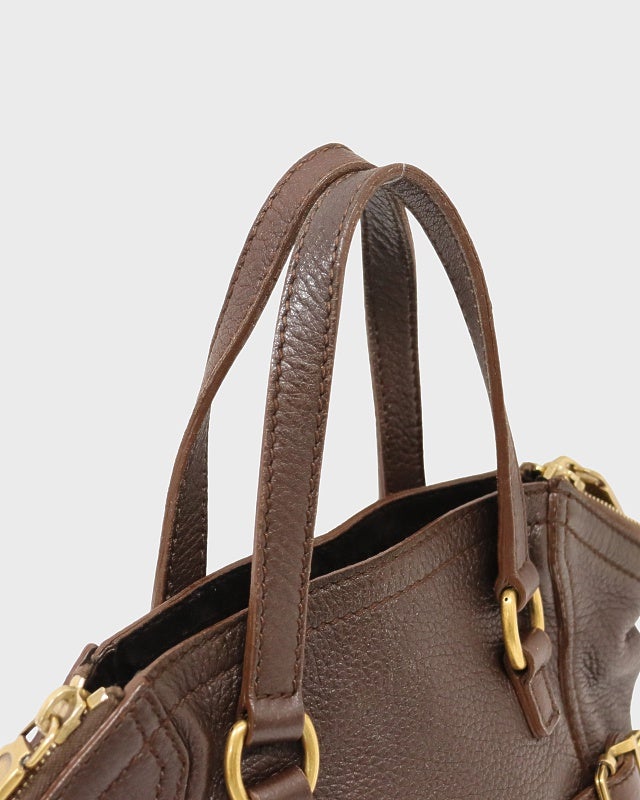 ロゴ金具レザーハンドバッグ