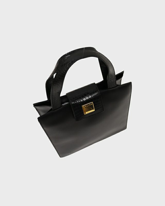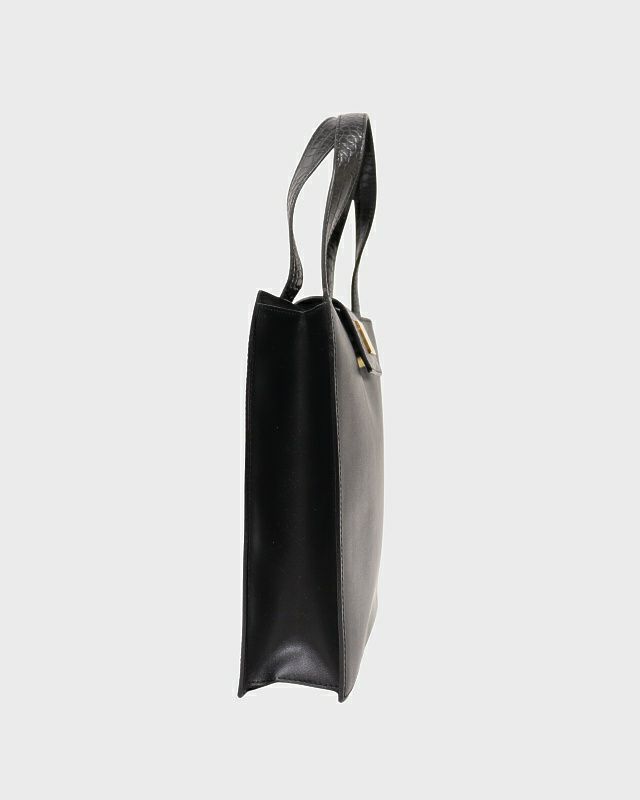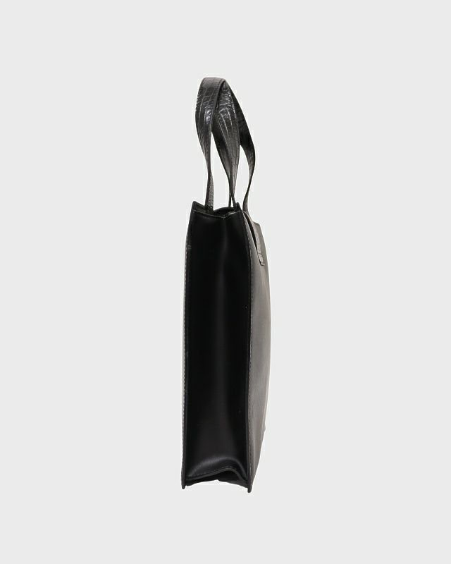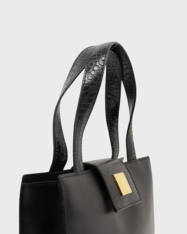 ロゴ金具クロコ型押しレザーハンドバッグ