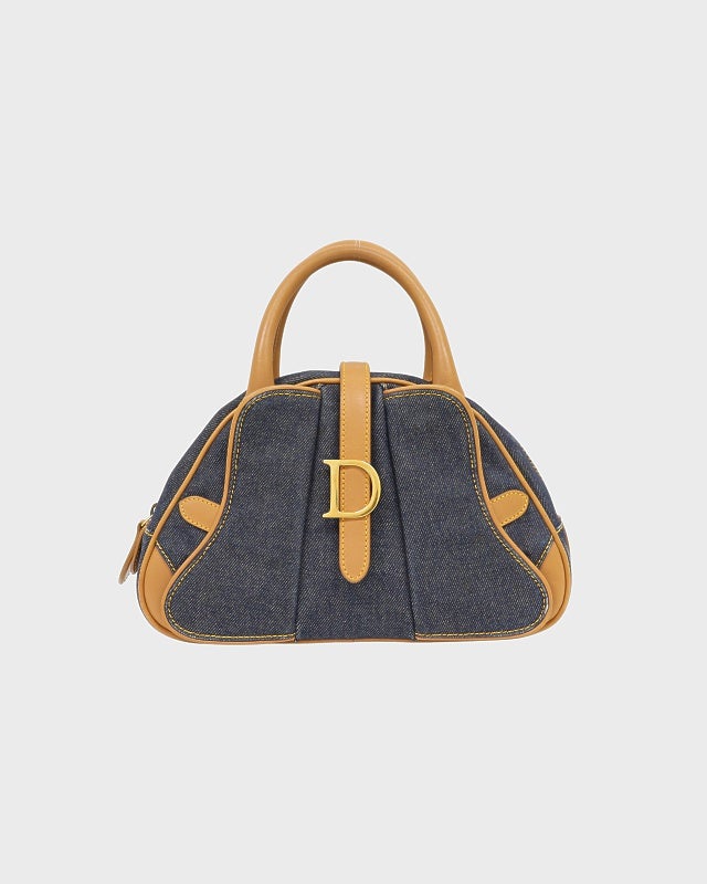 サドルダブルデニムハンドバッグ
