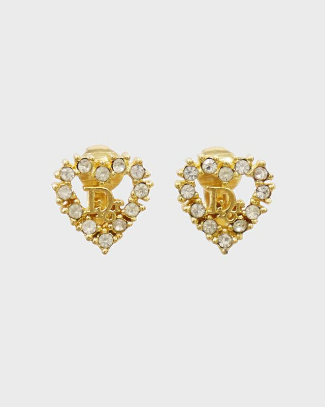 ロゴハートラインストーンイヤリング