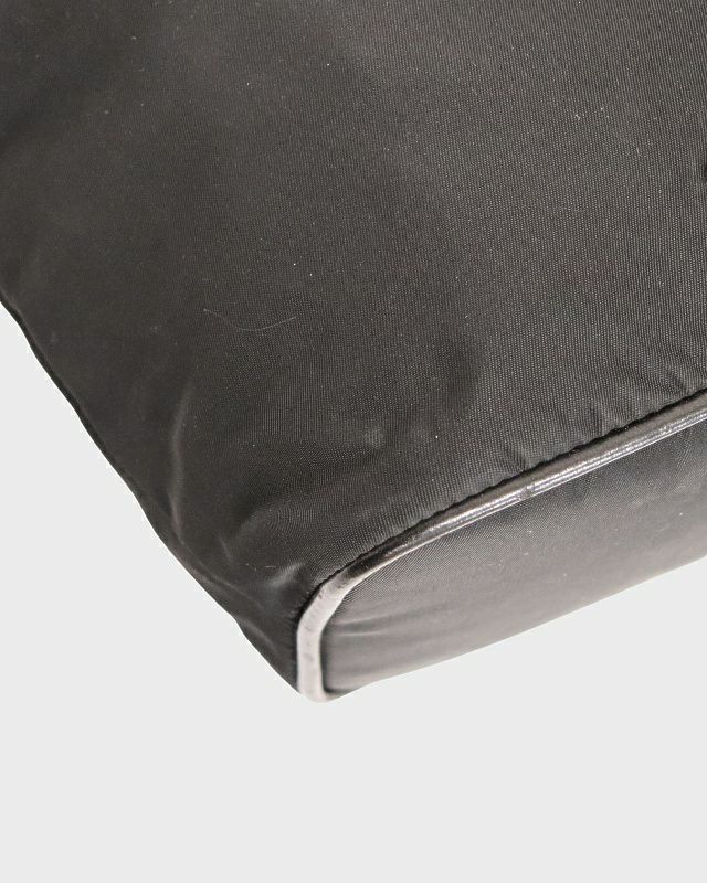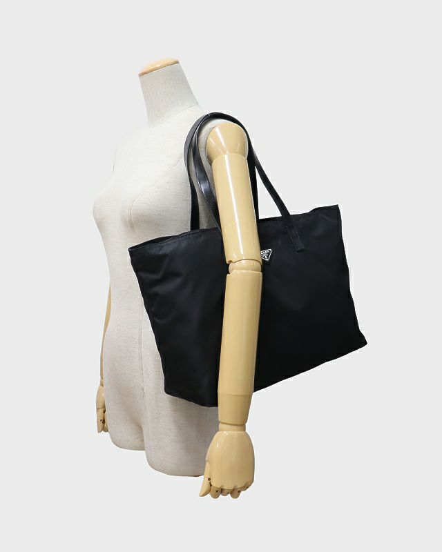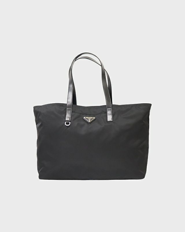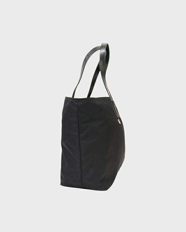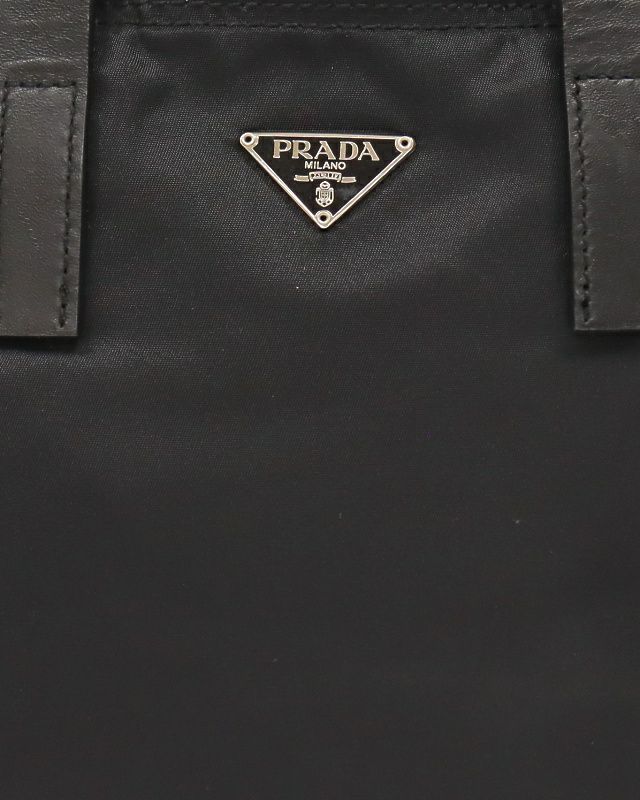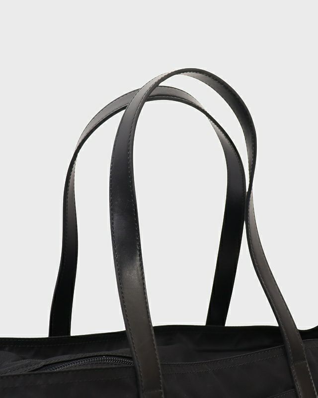 三角ロゴ金具ナイロンレザートートバッグ