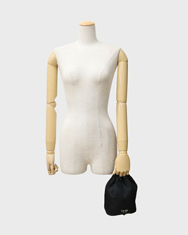 三角ロゴ金具ナイロン巾着ポーチ