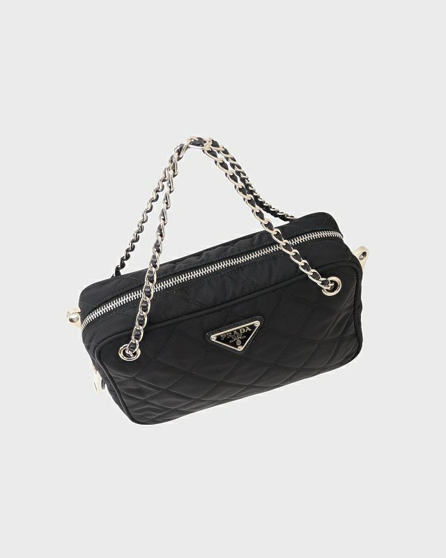 三角ロゴキルティングナイロンチェーンハンドバッグ