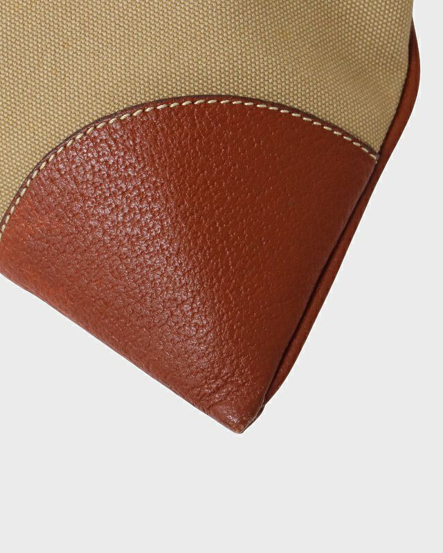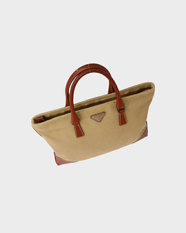 三角ロゴキャンバスレザーハンドバッグ