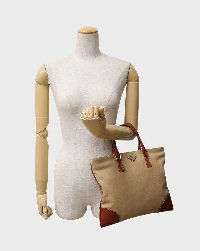 三角ロゴ金具ナイロンレザートートバッグ