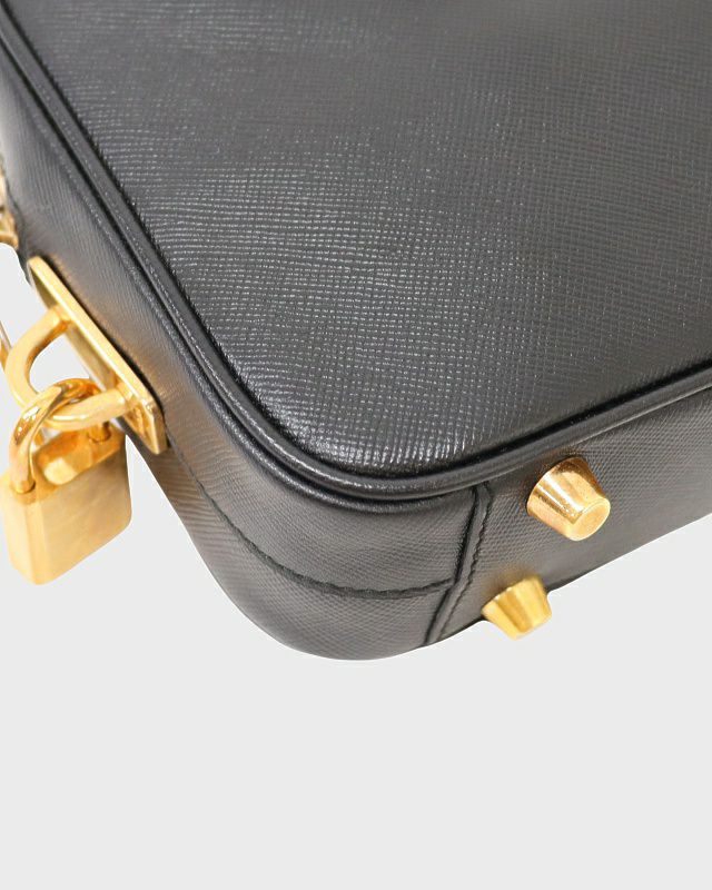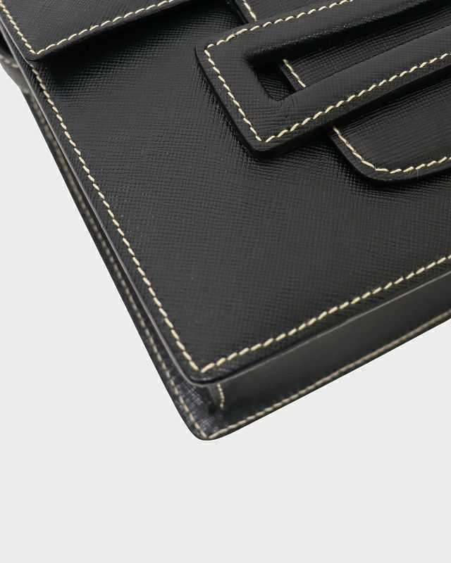 三角ロゴ金具サフィアーノハンドバッグ