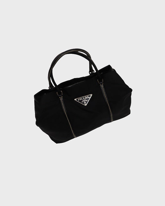 三角ロゴ金具ナイロンハンドバッグ