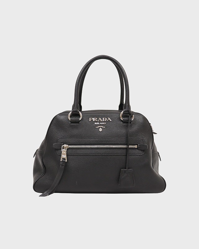 三角ロゴサフィアーノレザーハンドバッグ