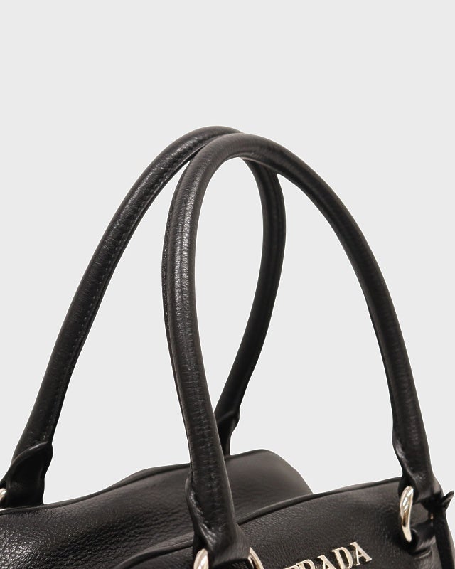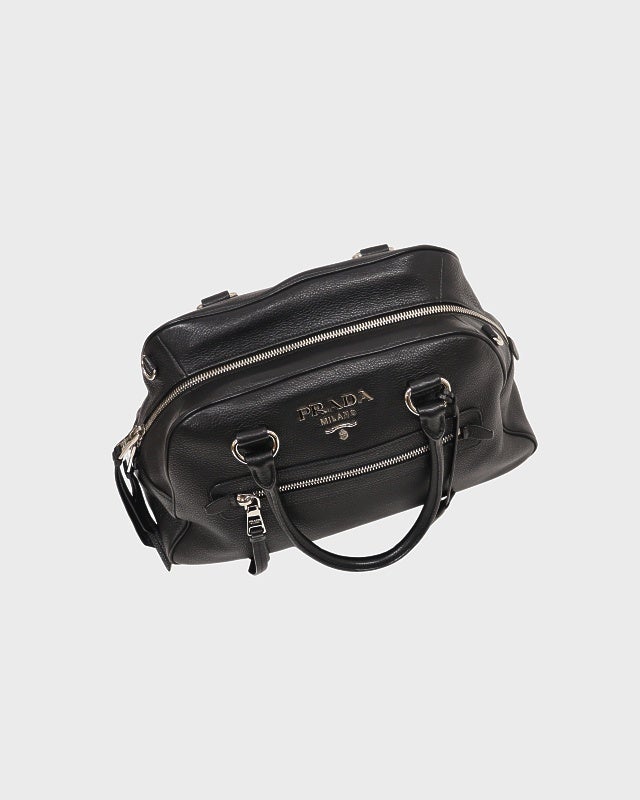 三角ロゴナイロンレザーハンドバッグ