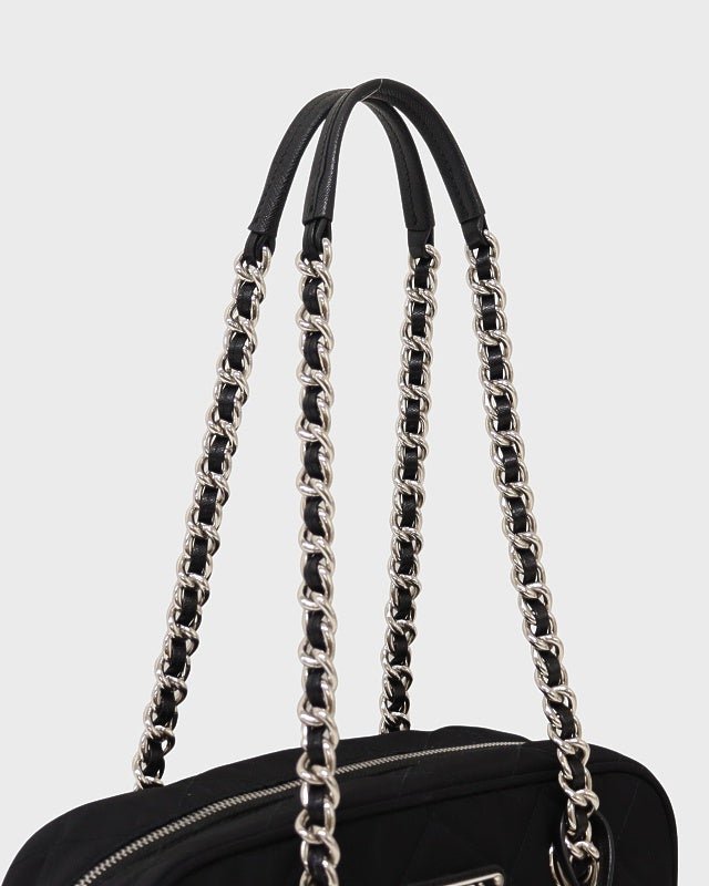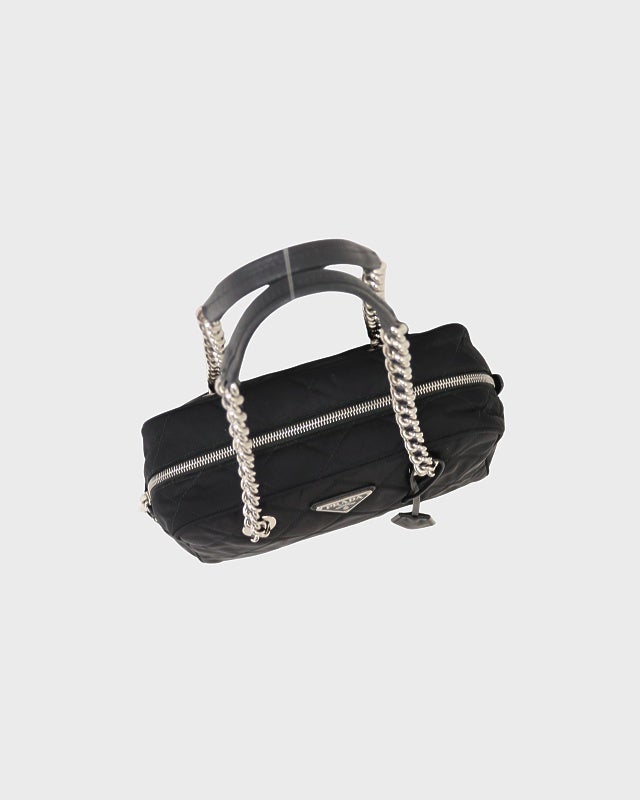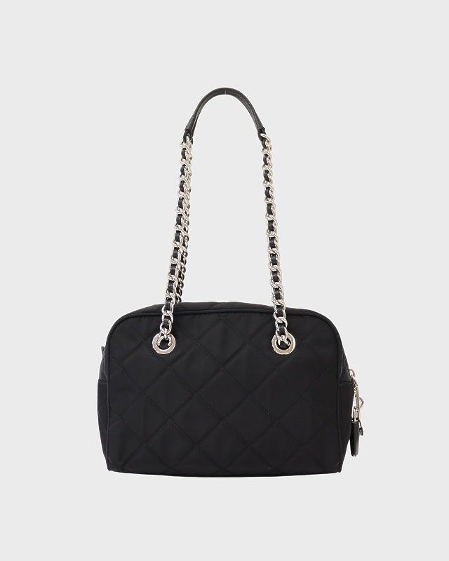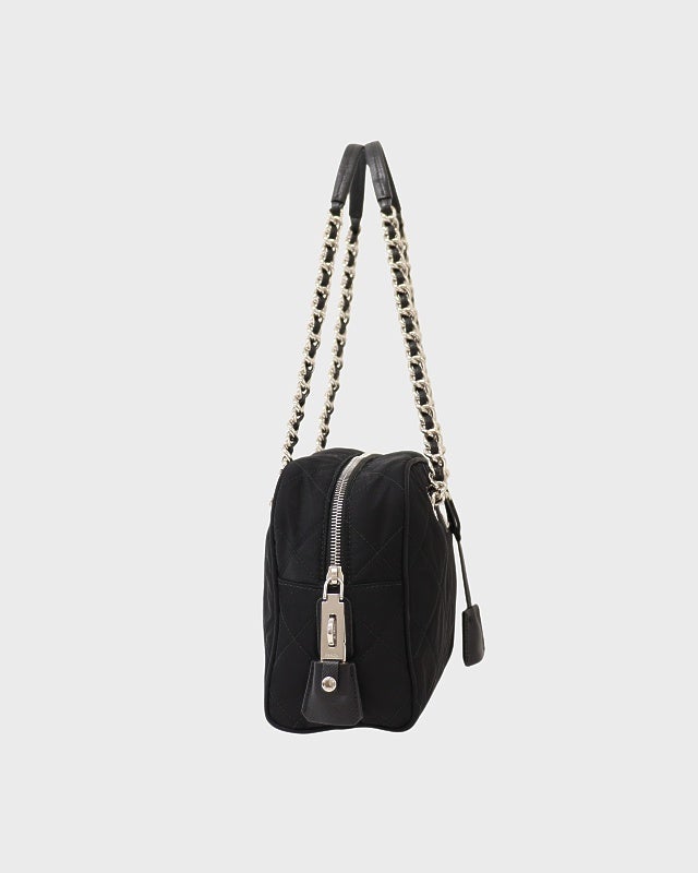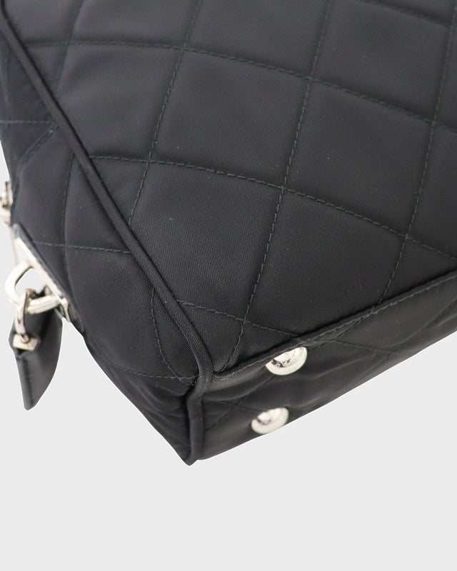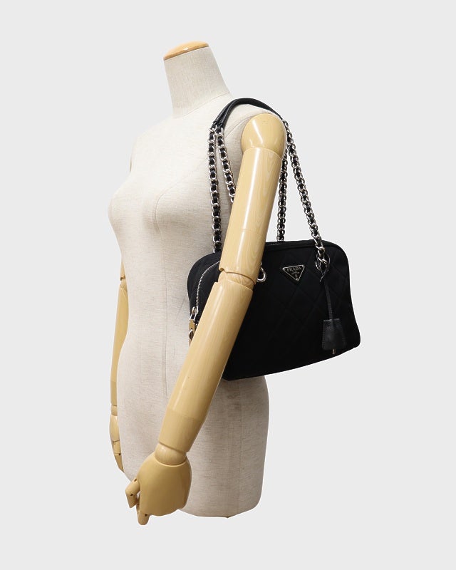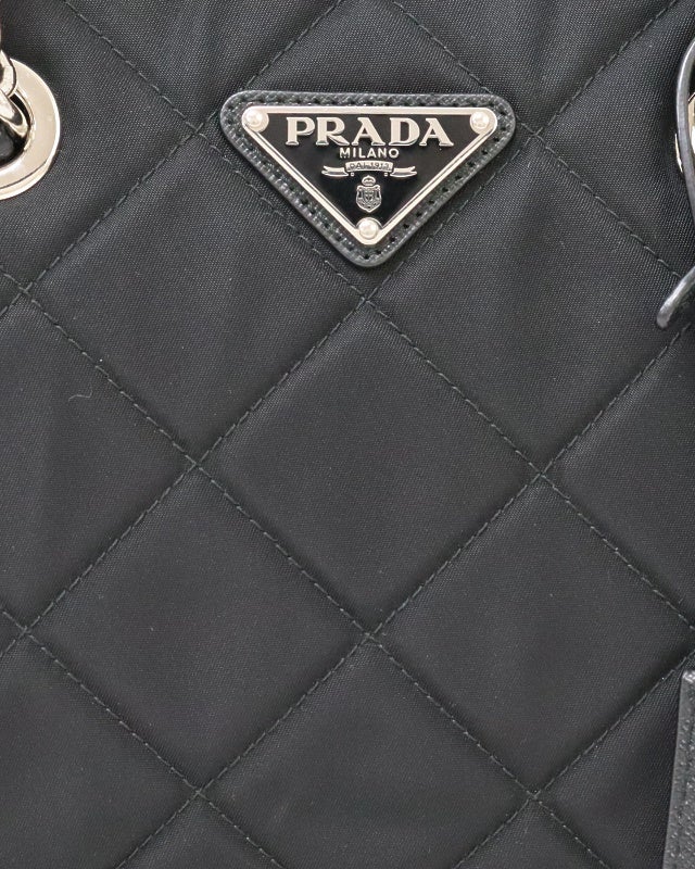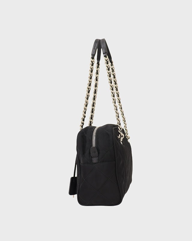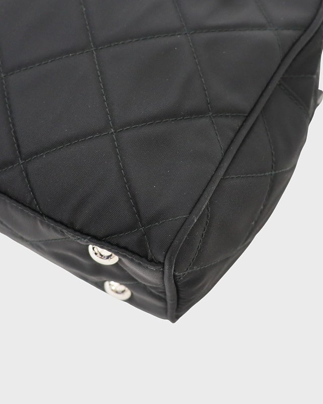 三角ロゴ金具キルティングナイロンチェーントートバッグ