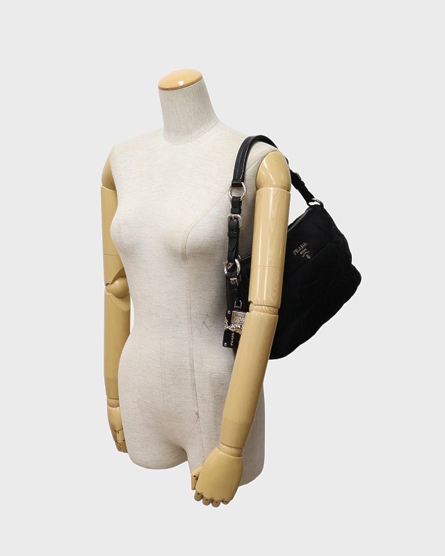 三角ロゴ金具ナイロンショルダーバッグ