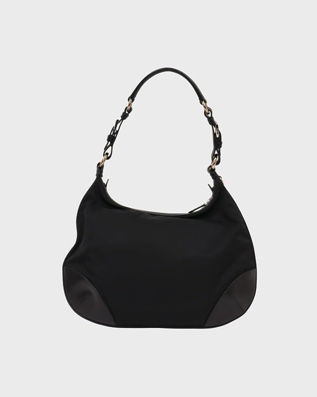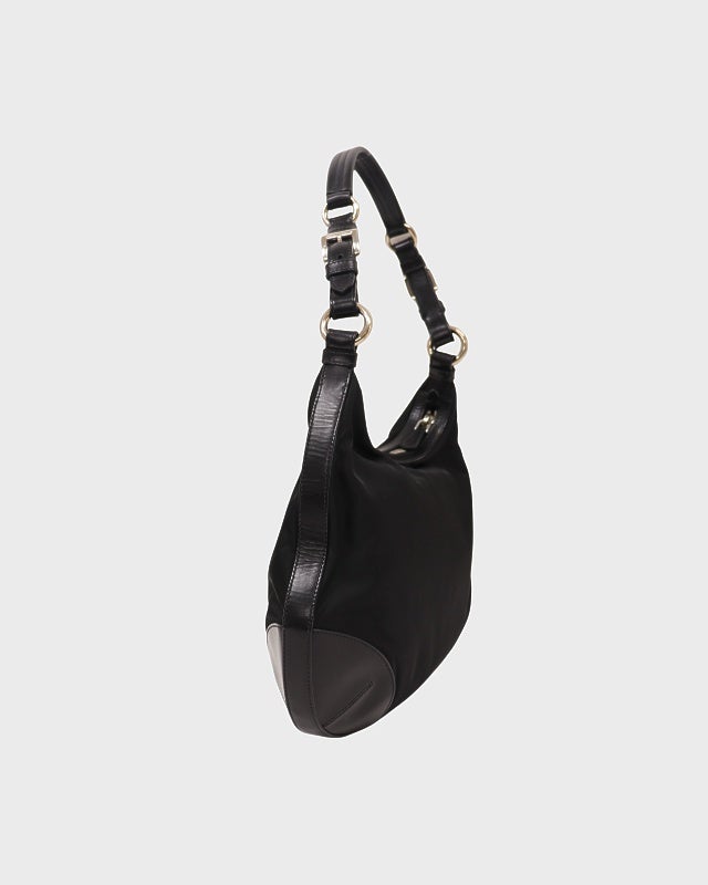 三角ロゴ金具ナイロンレザーワンショルダーバッグ
