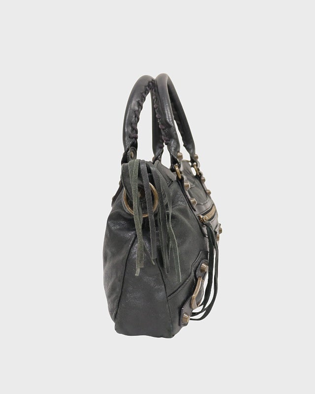 バイカラーレザーハンドバッグ