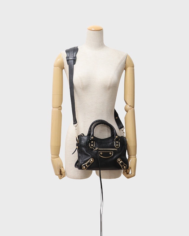 ロゴ金具レザーミニハンドバッグ