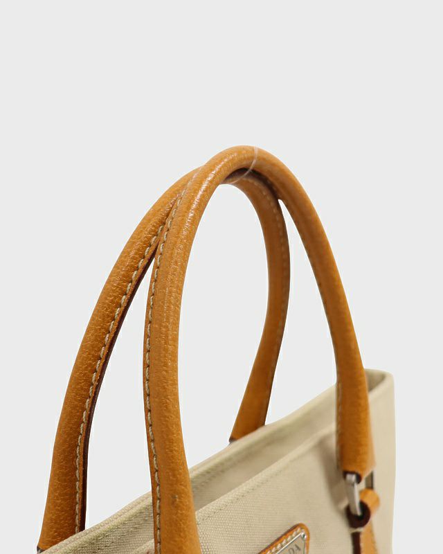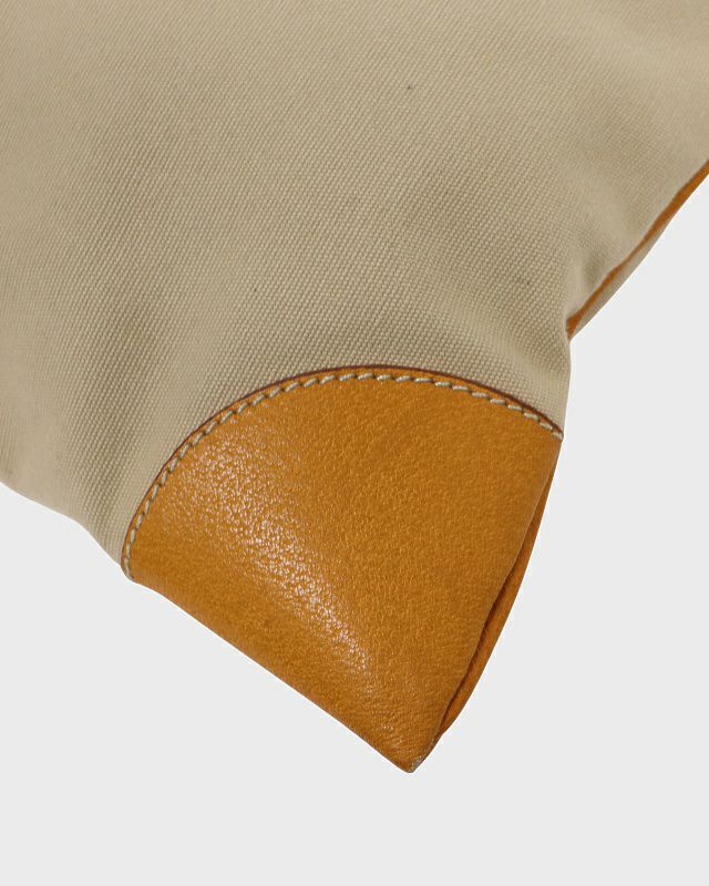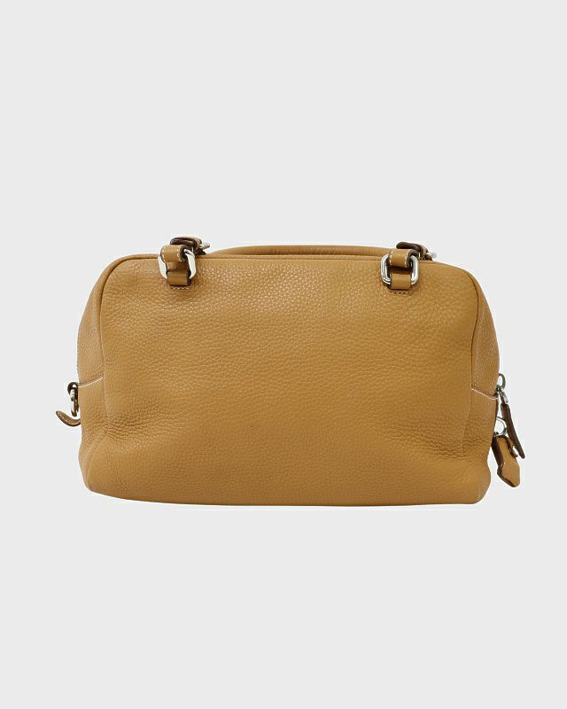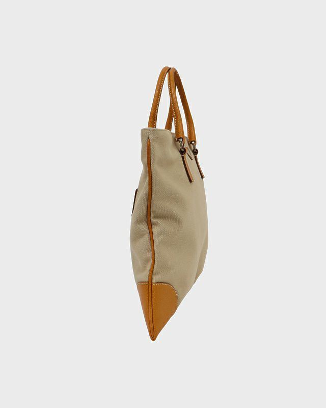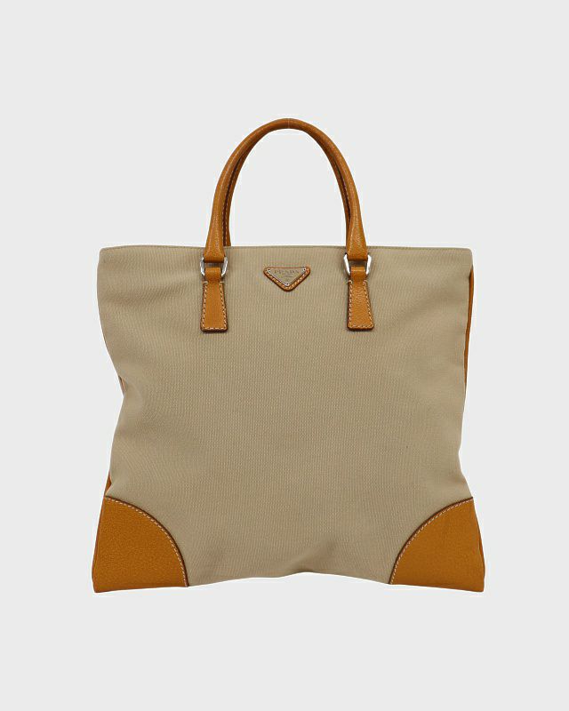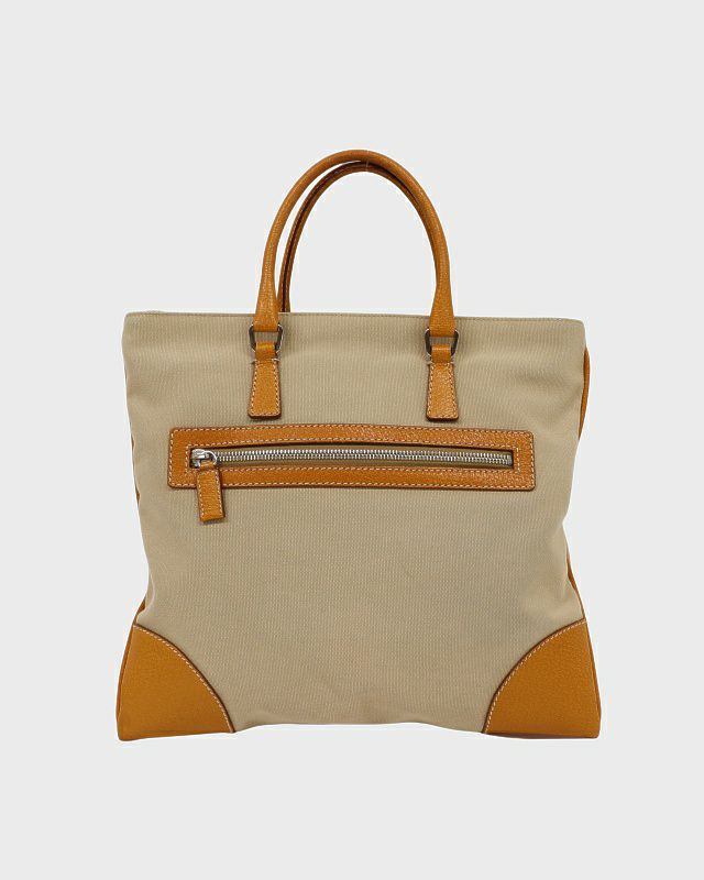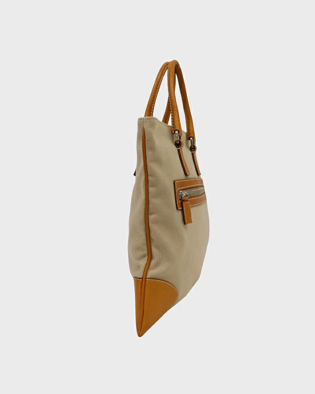 三角ロゴ金具キャンバスレザーハンドバッグ