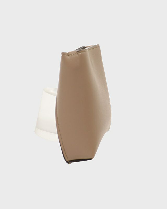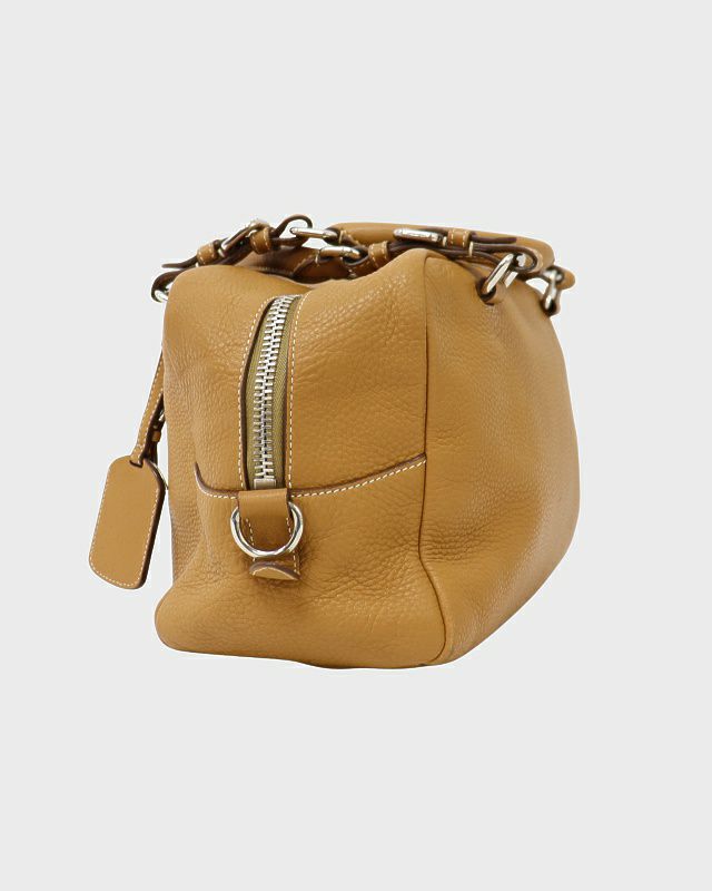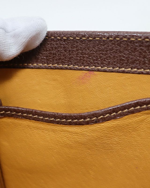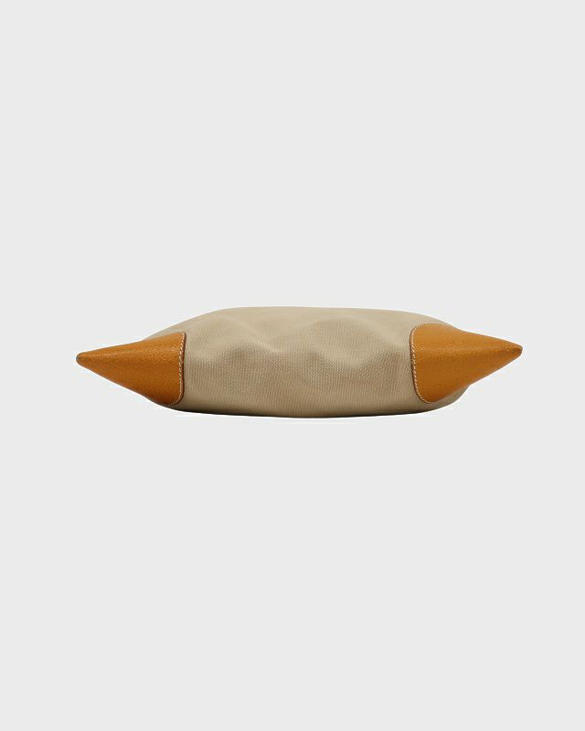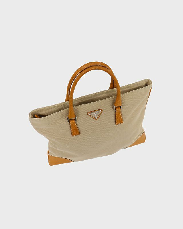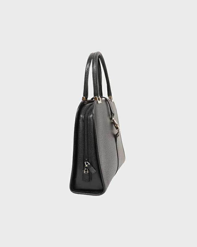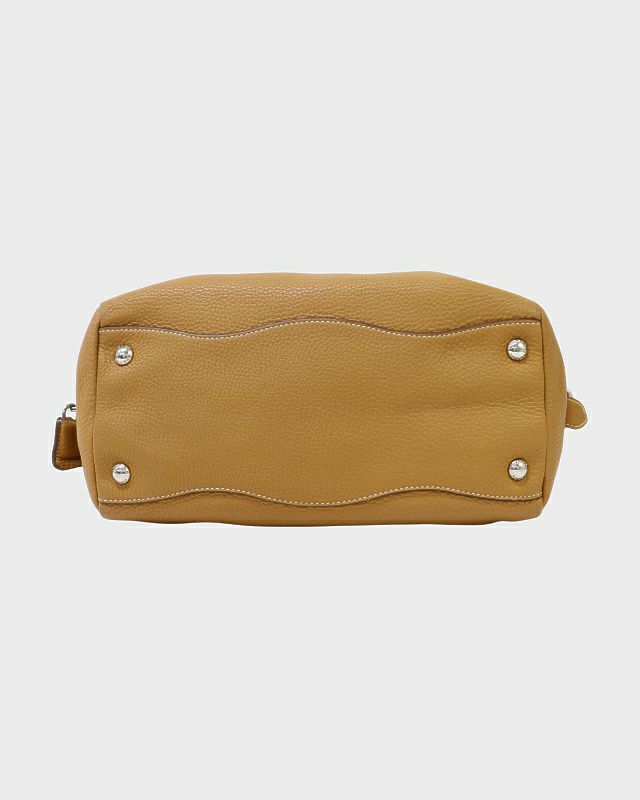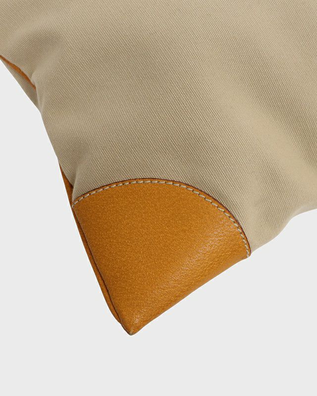 三角ロゴ金具キャンバスレザーハンドバッグ