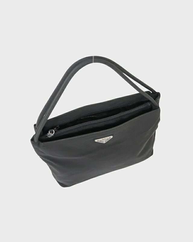 三角ロゴ金具ナイロンハンドバッグ