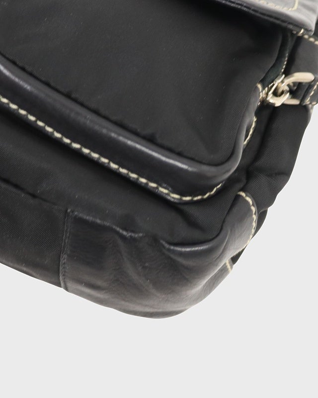 三角ロゴ金具ナイロンレザーショルダーバッグ