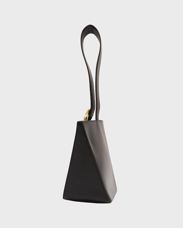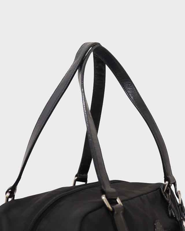 三角ロゴ金具ナイロンレザーハンドバッグ