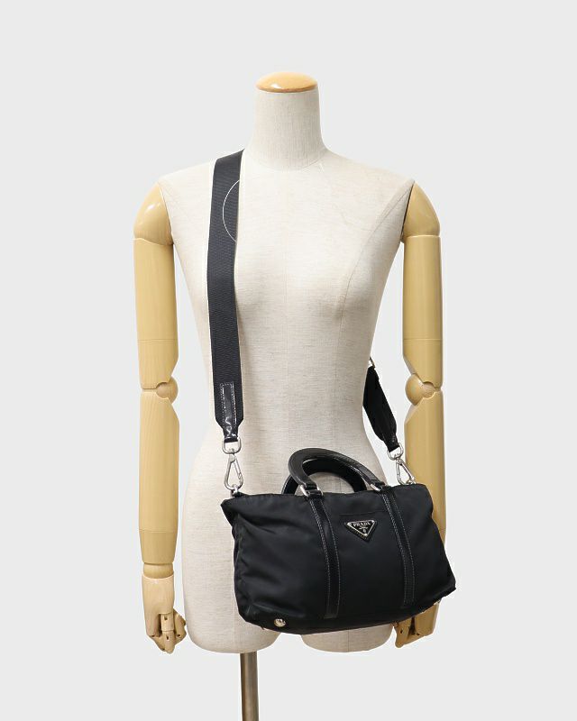 三角ロゴ金具ナイロンレザー2Wayバッグ