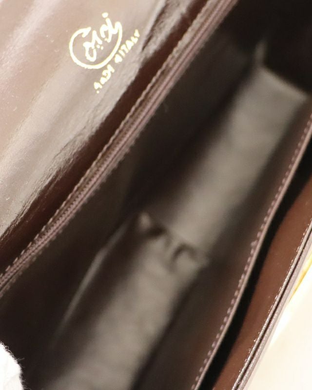 ロゴ金具がま口ハンドバッグ