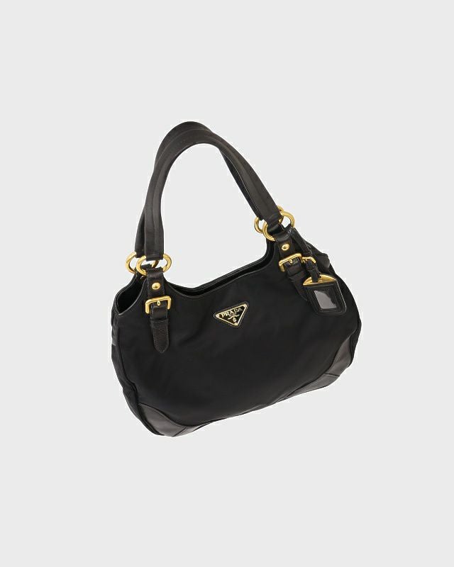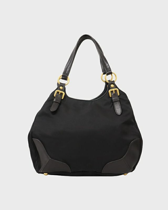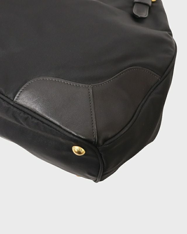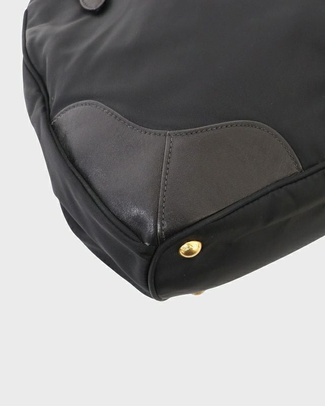 三角ロゴ金具ナイロンレザートートバッグ