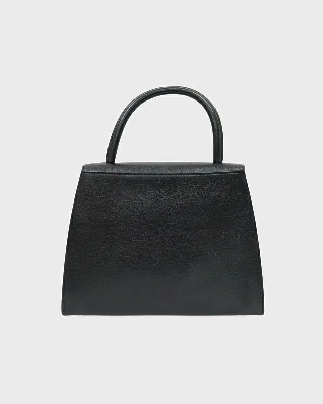 三角ロゴ金具レザーハンドバッグ